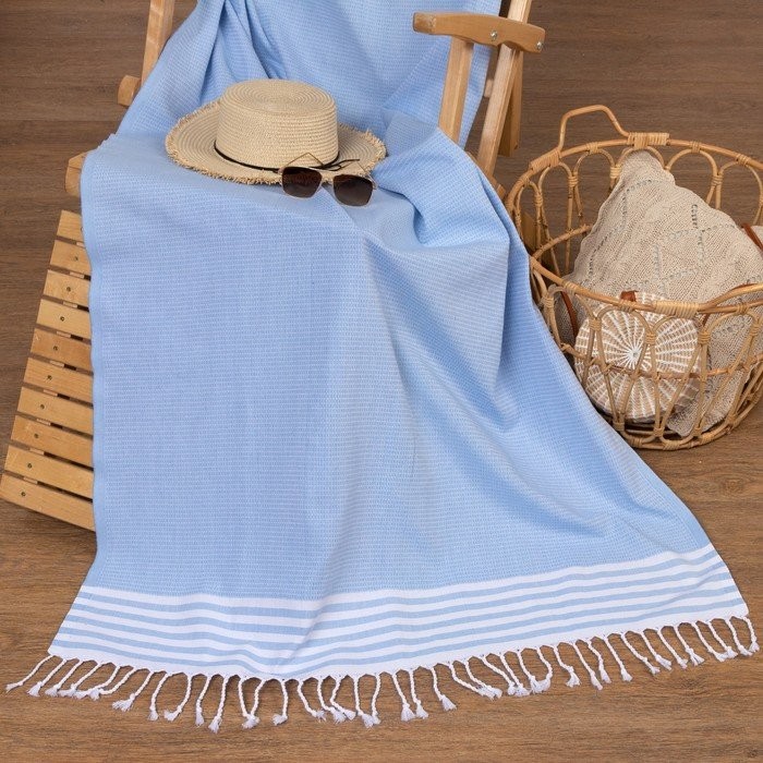 Пештемаль для пляжа, бани, сауны Waffle 100×180 см, голубой
