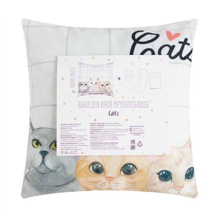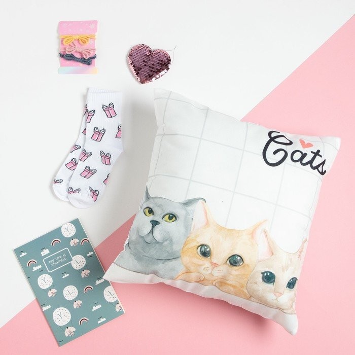 Подарочный набор «Cats» подушка-секрет, 40×40 см и аксессуары