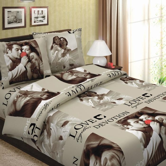 Постельное бельё «Традиция: Сладкая парочка беж», евро, 200×217 см, 220×240 см, 70×70 см. — 2 шт., бязь 125г/м хл.100%