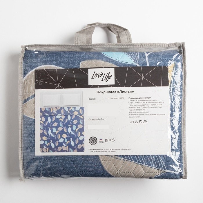 Покрывало LoveLife евро «Листья» 200*210±5см, микрофайбер, 100% п/э