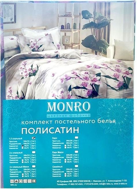 Постельное бельё Monro Евро 200×210, 200×210, 70х70см 2шт полисатин 80г/м, пэ100%