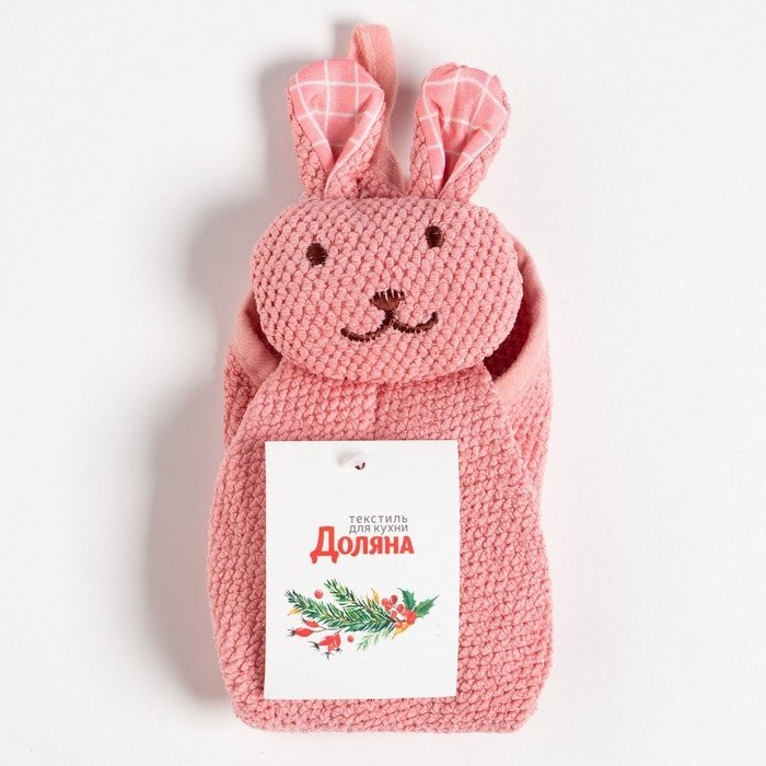 Полотенце кухонное Доляна «Заяц», цв. розовый 30*30 см 280гр/м2