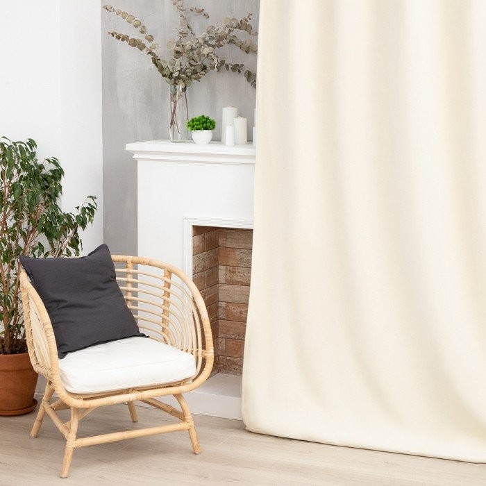 Штора портьерная Этель «Структурная», цвет молочный, на шторной ленте, 130×300 см, 100% п/э