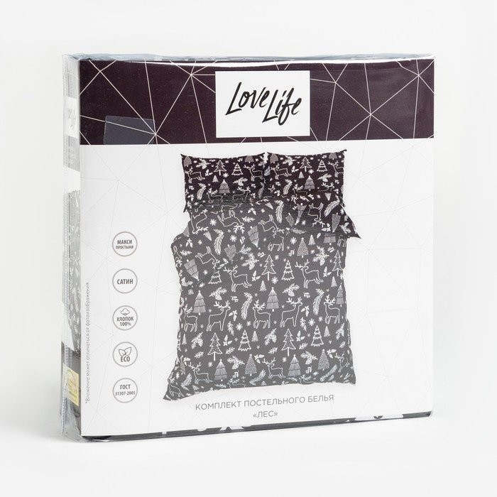 Постельное бельё LoveLife 2сп «Лес» 175×215 см, 200×225 см, 50×70 см-2шт, 100%хлопок, сатин