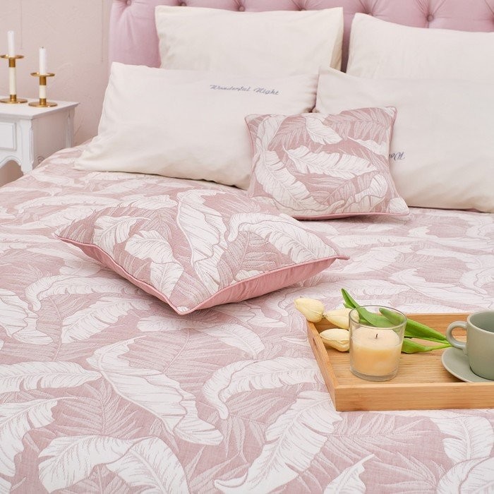 Покрывало хлопковое Этель «Перья» 220×240 см, цвет бежевый, 100% хлопок, 300гр/м2