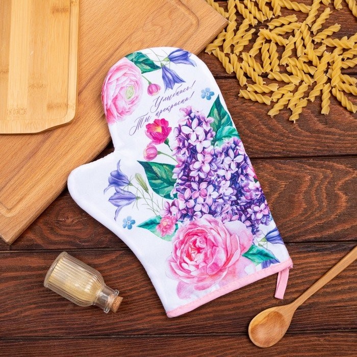 Варежка-прихватка «Улыбнись» 20х28см,35% х/л,65% п/э,ватин 250г/м2