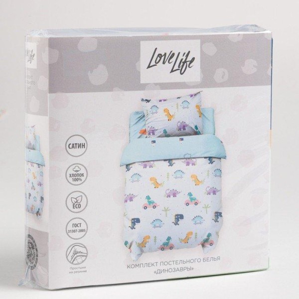 Постельное бельё 1.5сп LoveLife «Динозавры» 143×215 см, 150×214 см, 70×70 см-1 шт, 125г/м2 сатин