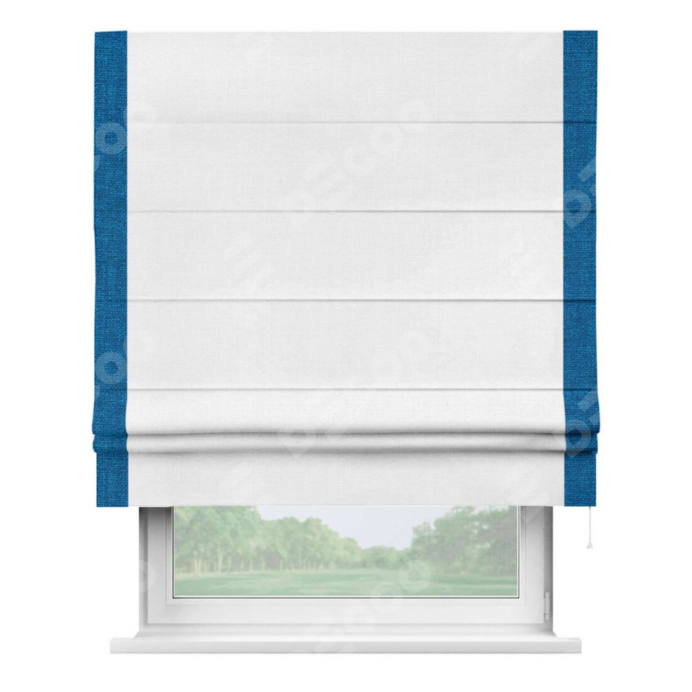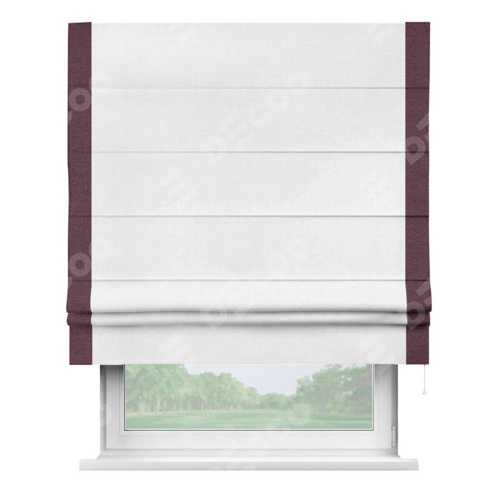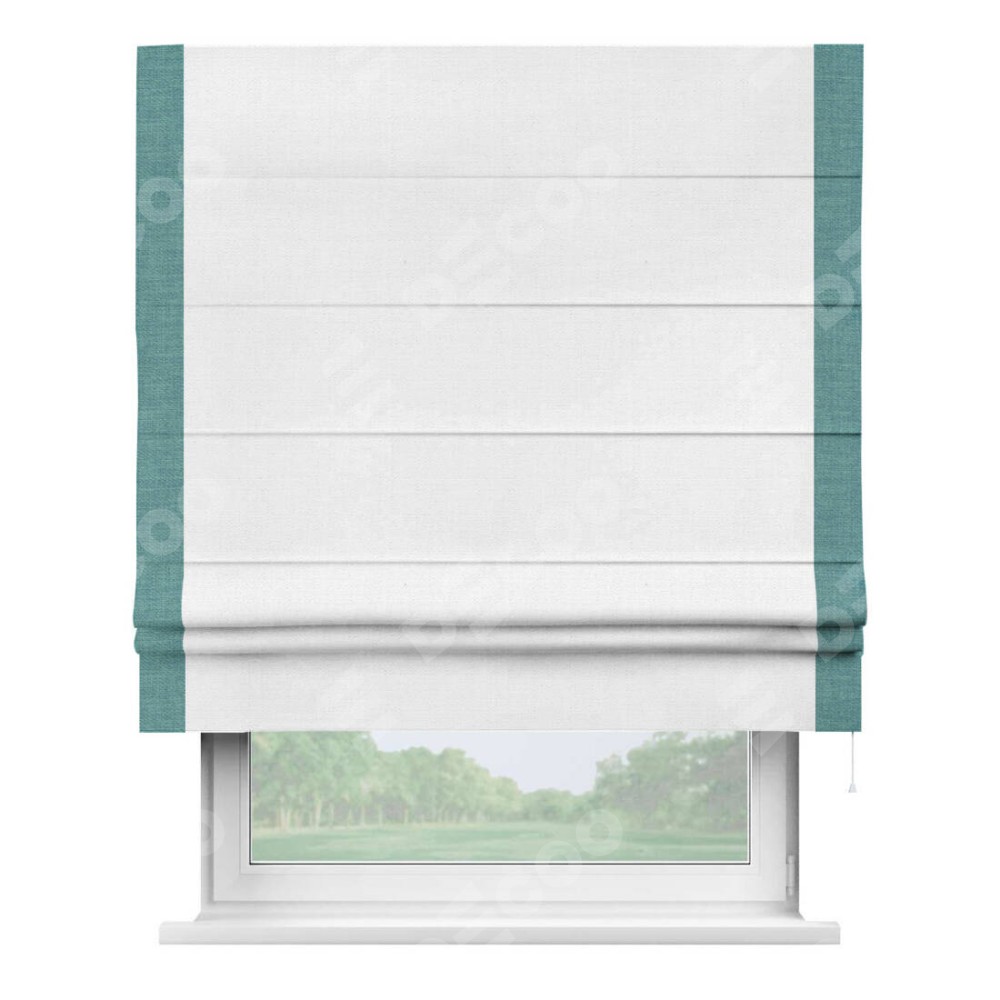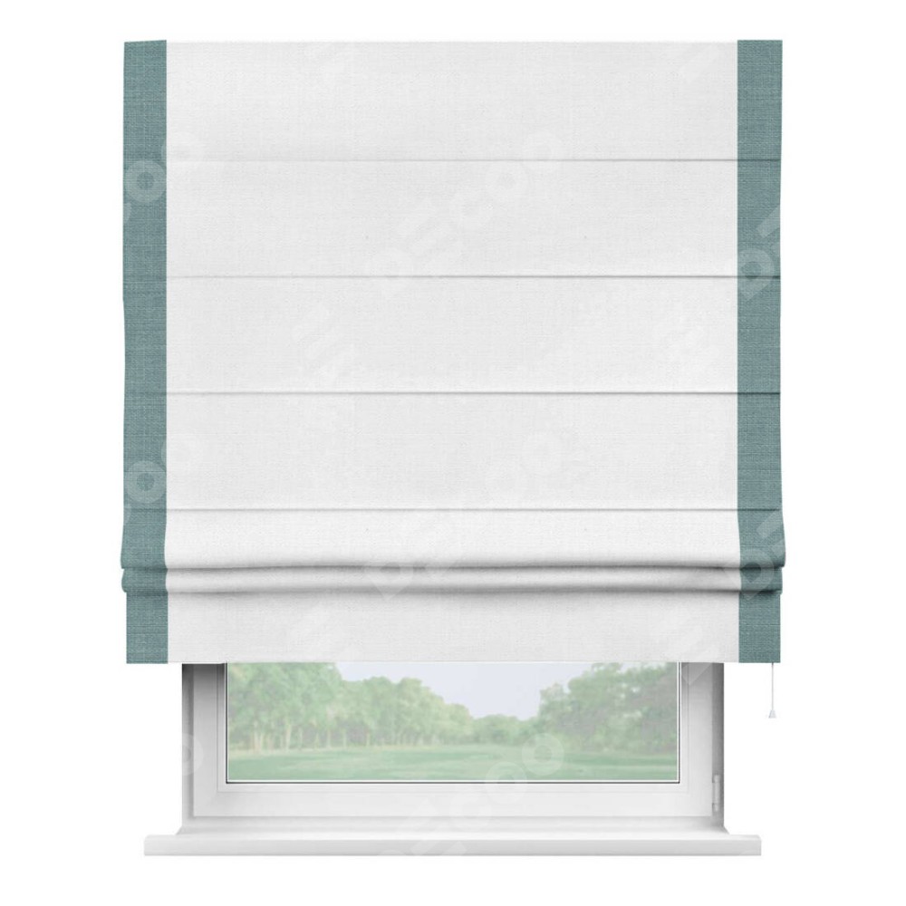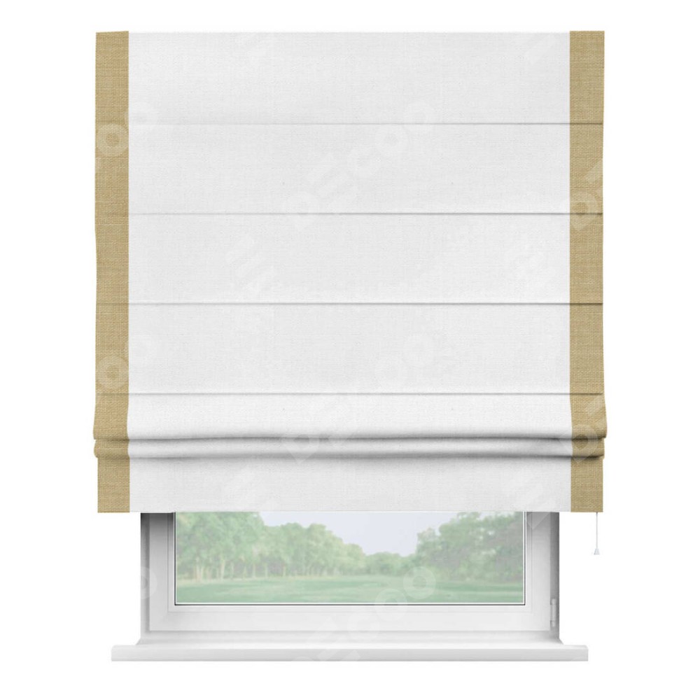 Римская штора «Кортин» с кантом Стрим Дуо, для проема, ткань лён белый, ширина 40−60 см