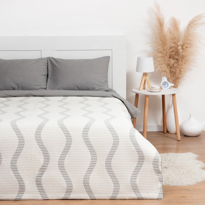 Покрывало хлопковое Этель «Волны» 200×240 см, цвет серый, 100% хлопок, 300гр/м2
