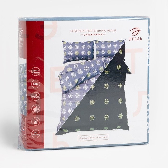Комплект: пододеяльник и 2 наволочки «Снежинки» 143×215 см, 50×70 см — 2 шт, 100% хлопок