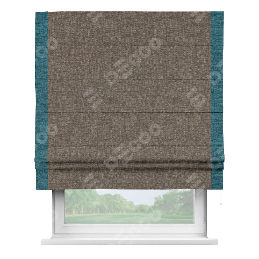 Римская штора «Кортин» с кантом Стрим Дуо, для проема, ткань рогожка димаут, коричневый