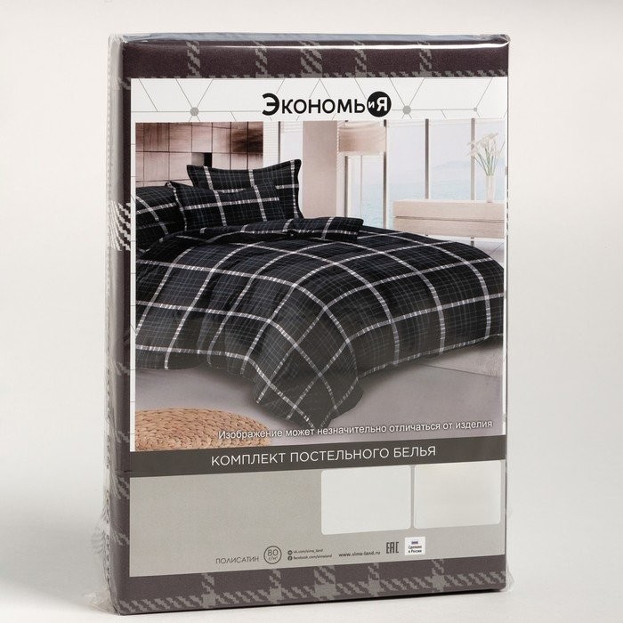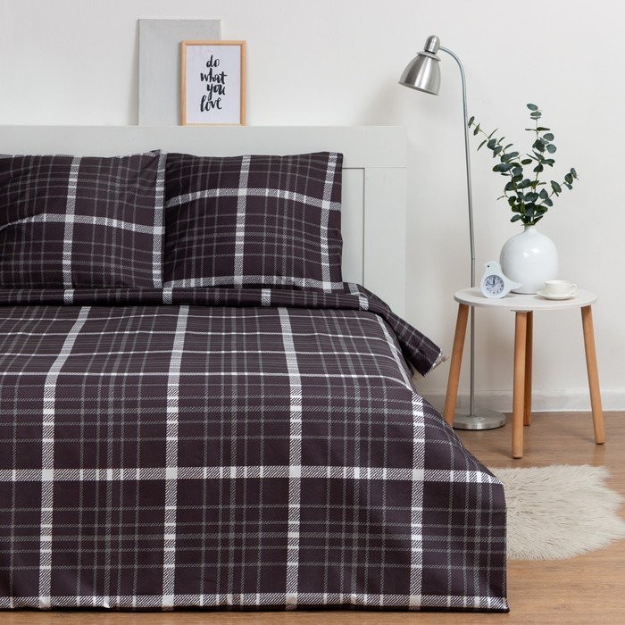 Постельное белье 2-х спальное «Клетка» 175×215, 200×215, 70×70−2 шт, сатин