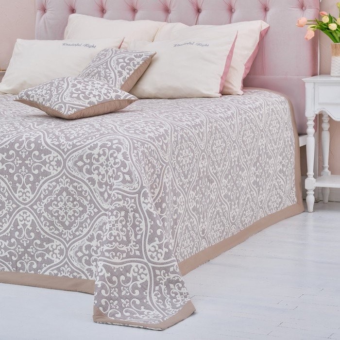 Покрывало хлопковое Этель «Орнамент» 180×240 см, цвет серый, 100% хлопок, 300гр/м2