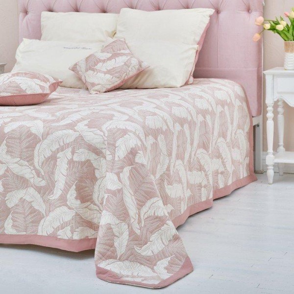 Покрывало хлопковое Этель «Перья» 150×240 см, цвет бежевый, 100% хлопок, 300гр/м2