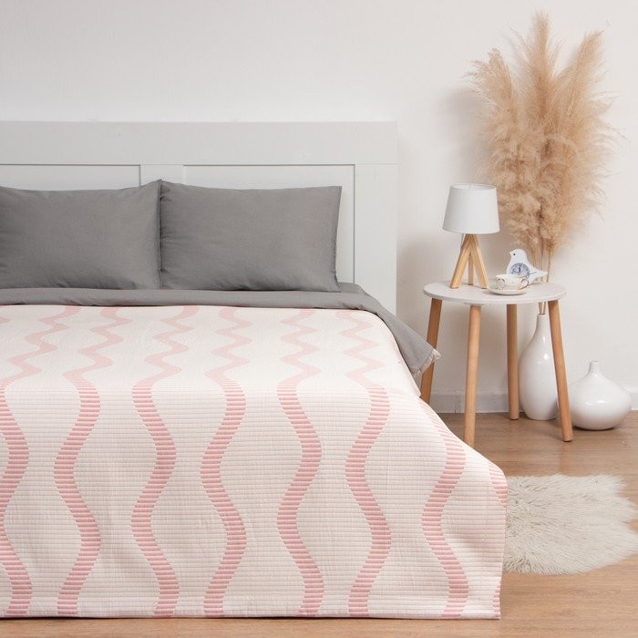 Покрывало хлопковое Этель «Волны» 220×240 см, цвет розовый, 100% хлопок, 300гр/м2