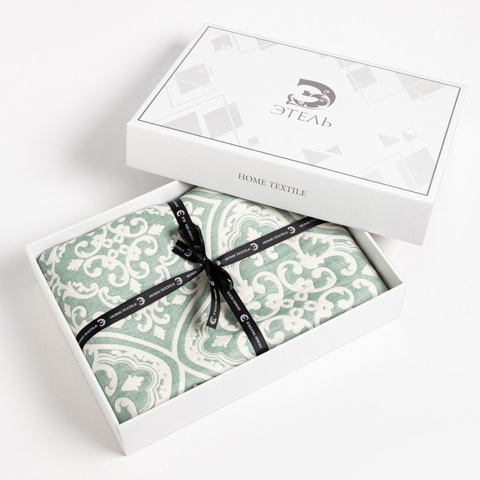 Покрывало хлопковое Этель «Орнамент» 220×240 см, цвет зелёный, 100% хлопок, 300гр/м2