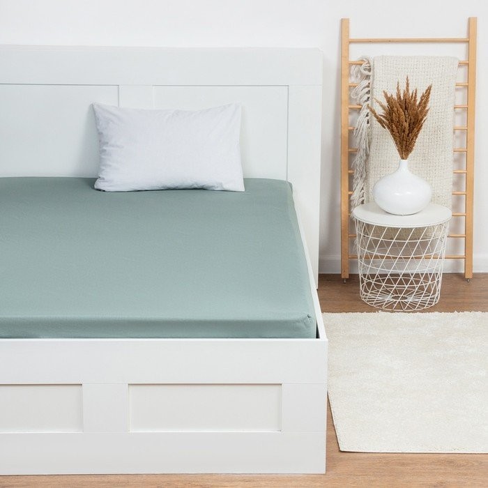 Простыня на резинке Этель 140х200×25, цвет серо-зелёный, 100% хлопок, бязь 125г/м2
