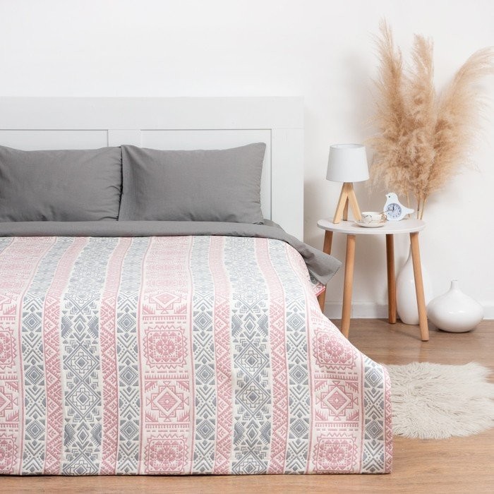 Покрывало хлопковое Этель «Инди» 200×240 см, цвет серо-розовый, 100% хлопок, 300гр/м2