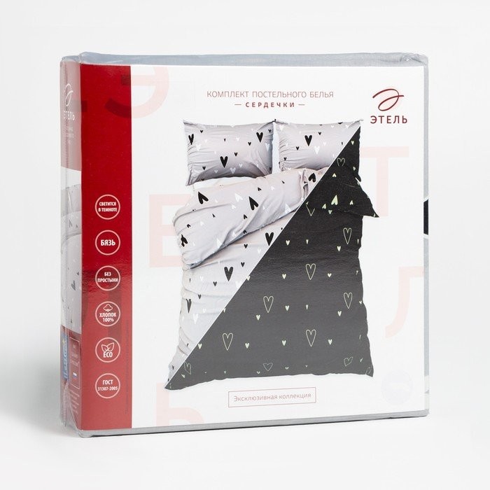 Комплект: пододеяльник и 2 наволочки «Сердечки» 143×215 см, 50×70 см — 2 шт, 100% хлопок