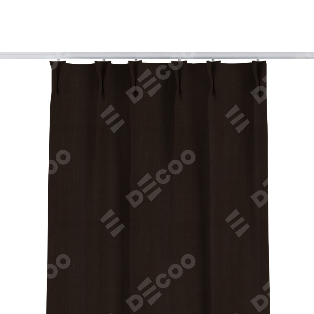 Комплект прямых штор, от производителя «Cortin», пошиты из ткани блэкаут однотонный венге, артикул ткани 88286. С изнаночной стороны в верхней части штор пристрачивается шторная лента с декоративными складками «Кустик». Для создания элегантных складок прямые шторы шьются по стандарту с коэффициентом 1:2 (на 100 см. ширины проёма 200 см. ширины ткани).