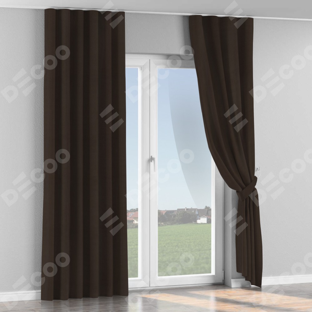 Комплект прямых штор, от производителя «Cortin», пошиты из ткани блэкаут однотонный венге, артикул ткани 88286. С изнаночной стороны в верхней части штор пристрачивается шторная лента с декоративными складками «Волна». Для создания элегантных складок прямые шторы шьются по стандарту с коэффициентом 1:2 (на 100 см. ширины проёма 200 см. ширины ткани).