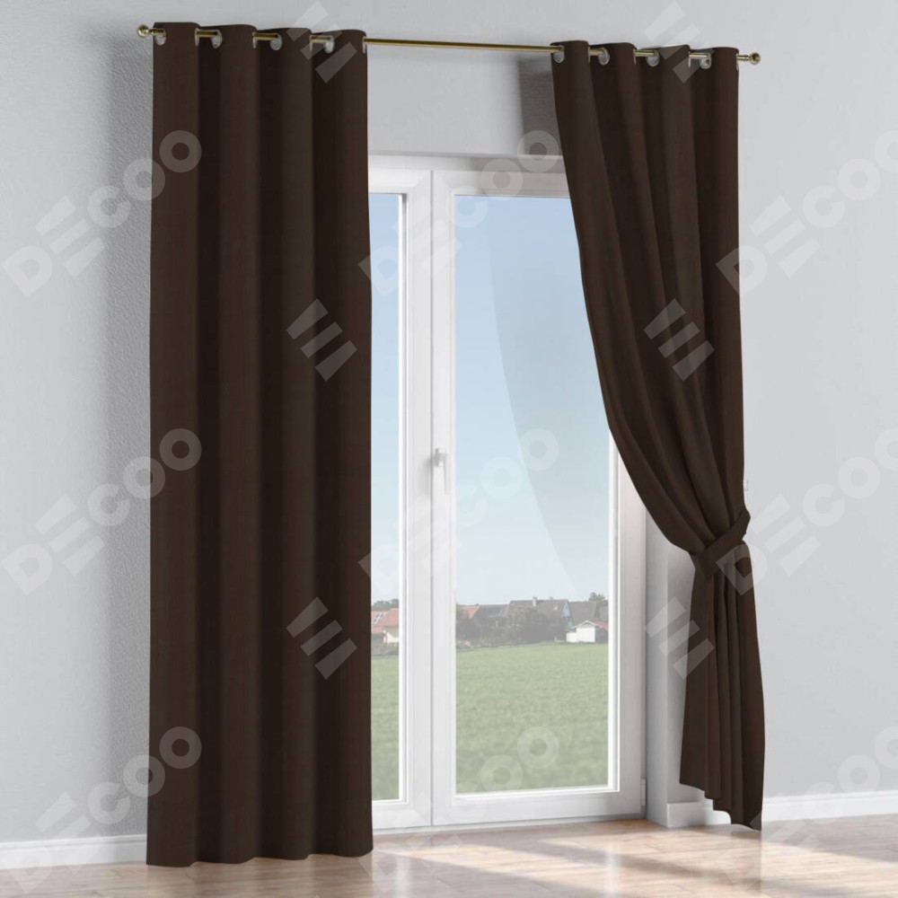 Комплект прямых штор, от производителя «Cortin», пошиты из ткани блэкаут однотонный венге, артикул ткани 88286. Данная модель пошита на люверсах, комплектуется на выбор круглым карнизом и подходит для монтажа на стену или потолок. Прямые шторы на люверсах шьются по стандарту с коэффициентом 1/2 (на 100 см. ширины проёма 200 см. ширины ткани), отличительным преимуществом данной модели является простой способ монтажа. Достаточно повесить ее на трубу и штора готова!