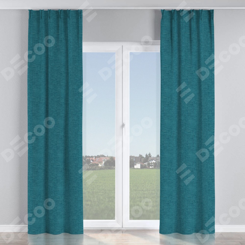 Комплект прямых штор, от производителя «Cortin», пошиты из ткани рогожка димаут синий, артикул ткани 80422. С изнаночной стороны в верхней части штор пристрачивается шторная лента с декоративными складками «Кустик». Для создания элегантных складок прямые шторы шьются по стандарту с коэффициентом 1:2 (на 100 см. ширины проёма 200 см. ширины ткани).