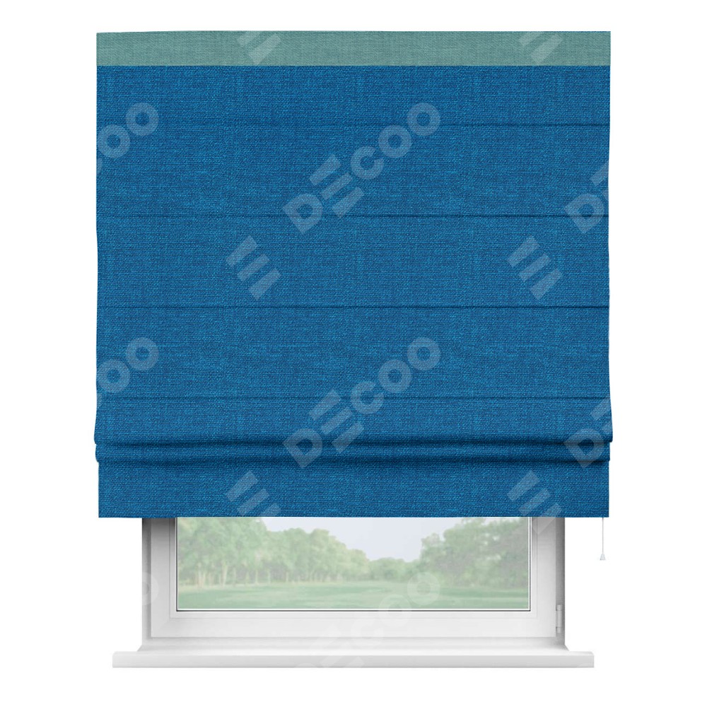 Римская штора «Кортин» с кантом Кинг, для проема, ткань лён синий