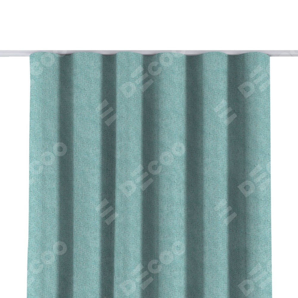 Комплект прямых штор, от производителя «Cortin», пошиты из ткани лён димаут бирюзовый, артикул ткани 23. С изнаночной стороны в верхней части штор пристрачивается шторная лента с декоративными складками «Волна». Для создания элегантных складок прямые шторы шьются по стандарту с коэффициентом 1:2 (на 100 см. ширины проёма 200 см. ширины ткани).
