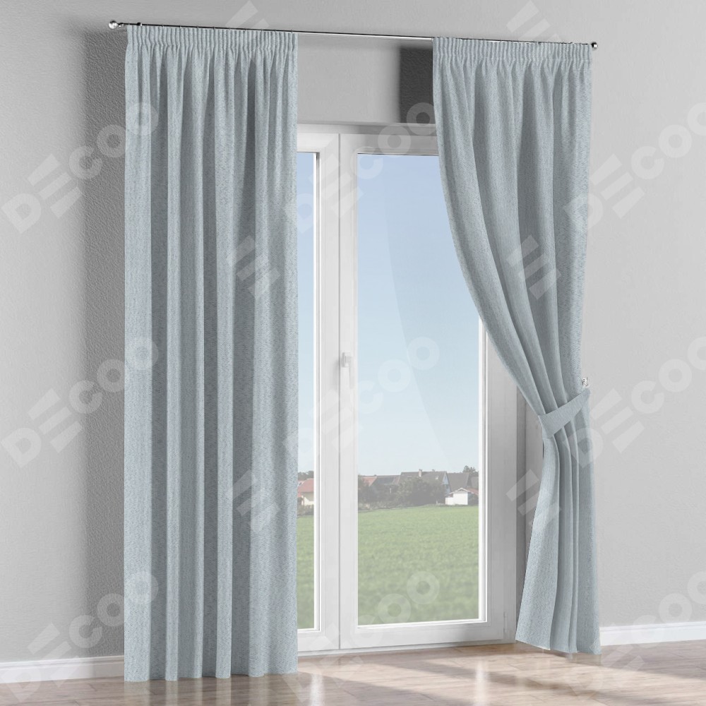 Комплект прямых штор, от производителя «Cortin», пошиты из ткани лён димаут серый, артикул ткани F3. С изнаночной стороны в верхней части штор пристрачивается шторная лента с декоративными складками «Карандаш». Для создания элегантных складок прямые шторы шьются по стандарту с коэффициентом 1:2 (на 100 см. ширины проёма 200 см. ширины ткани).