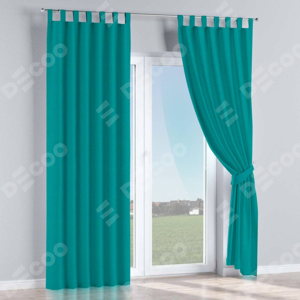 Комплект прямых штор, от производителя «Cortin», пошиты из ткани лён димаут тёмно-бирюзовый, артикул ткани 318. Данная модель пошита на петлях, комплектуется на выбор круглым карнизом и подходит для монтажа на стену или потолок. Прямые шторы на петлях шьются по стандарту с коэффициентом 1/2 (на 100 см. ширины проёма 200 см. ширины ткани), отличительным преимуществом данной модели является простой способ монтажа. Достаточно повесить ее на трубу и штора готова!