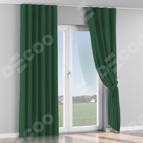Комплект прямых штор, от производителя «Cortin», пошиты из ткани лён димаут тёмно-зелёный, артикул ткани 16246. С изнаночной стороны в верхней части штор пристрачивается шторная лента с декоративными складками «Волна». Для создания элегантных складок прямые шторы шьются по стандарту с коэффициентом 1:2 (на 100 см. ширины проёма 200 см. ширины ткани).