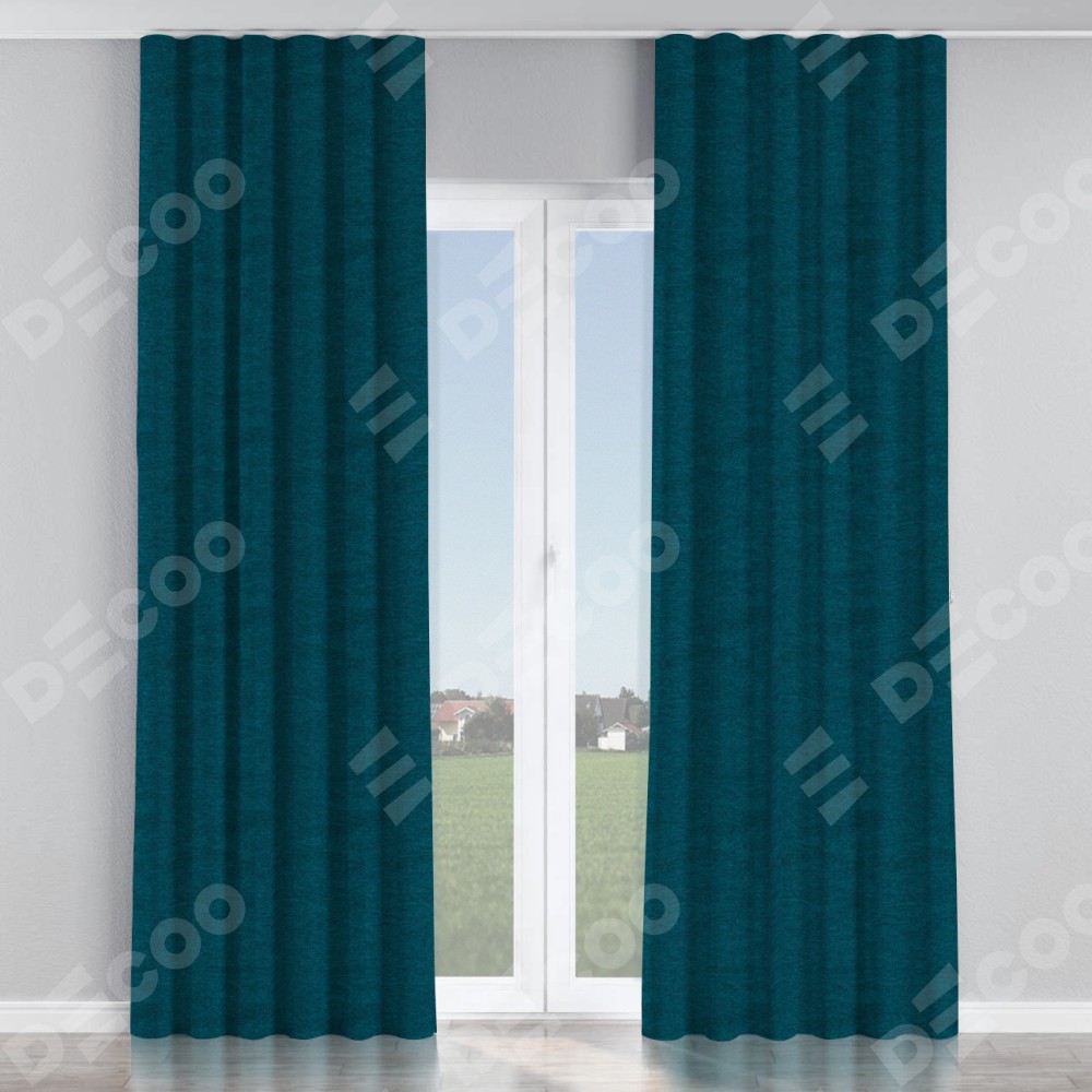 Комплект прямых штор, от производителя «Cortin», пошиты из ткани твид блэкаут глубокий синий, артикул ткани 21590. С изнаночной стороны в верхней части штор пристрачивается шторная лента с декоративными складками «Волна». Для создания элегантных складок прямые шторы шьются по стандарту с коэффициентом 1:2 (на 100 см. ширины проёма 200 см. ширины ткани).