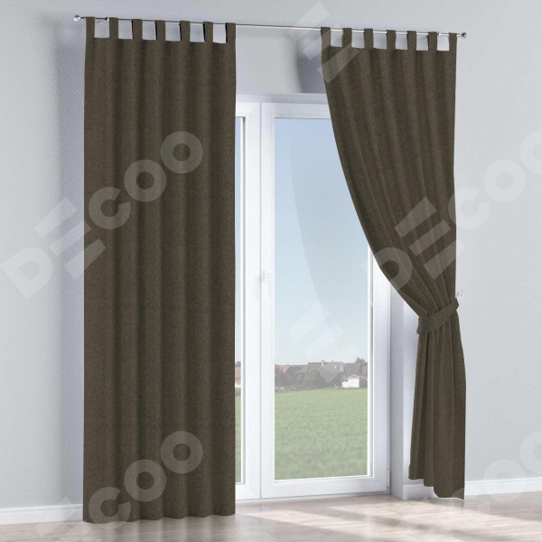 Комплект прямых штор, от производителя «Cortin», пошиты из ткани твид блэкаут тёмно-коричневый, артикул ткани 21584. Данная модель пошита на петлях, комплектуется на выбор круглым карнизом и подходит для монтажа на стену или потолок. Прямые шторы на петлях шьются по стандарту с коэффициентом 1/2 (на 100 см. ширины проёма 200 см. ширины ткани), отличительным преимуществом данной модели является простой способ монтажа. Достаточно повесить ее на трубу и штора готова!