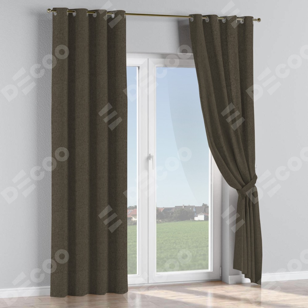 Комплект прямых штор, от производителя «Cortin», пошиты из ткани твид блэкаут тёмно-коричневый, артикул ткани 21584. Данная модель пошита на люверсах, комплектуется на выбор круглым карнизом и подходит для монтажа на стену или потолок. Прямые шторы на люверсах шьются по стандарту с коэффициентом 1/2 (на 100 см. ширины проёма 200 см. ширины ткани), отличительным преимуществом данной модели является простой способ монтажа. Достаточно повесить ее на трубу и штора готова!