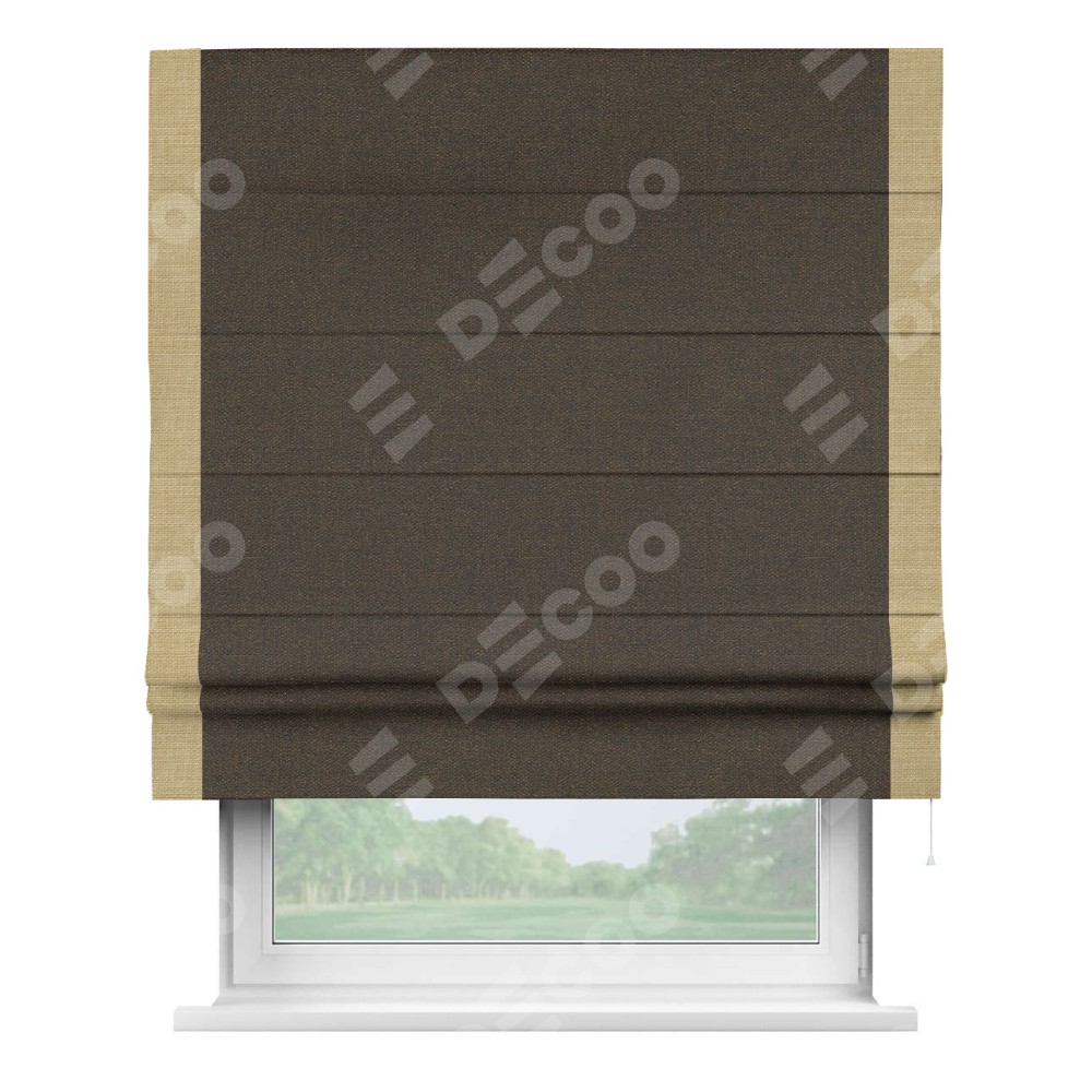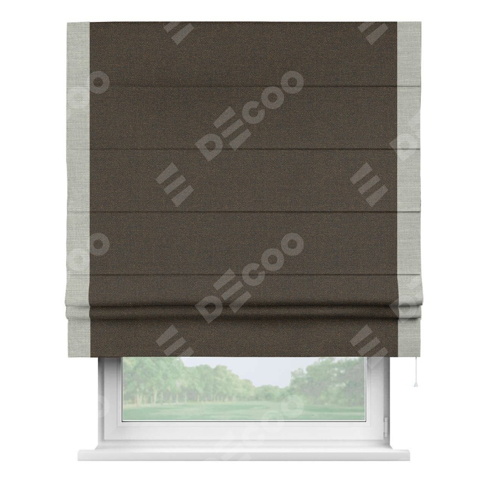 Римская штора «Кортин» с кантом Стрим Дуо, для проема, ткань лён темно-коричневый