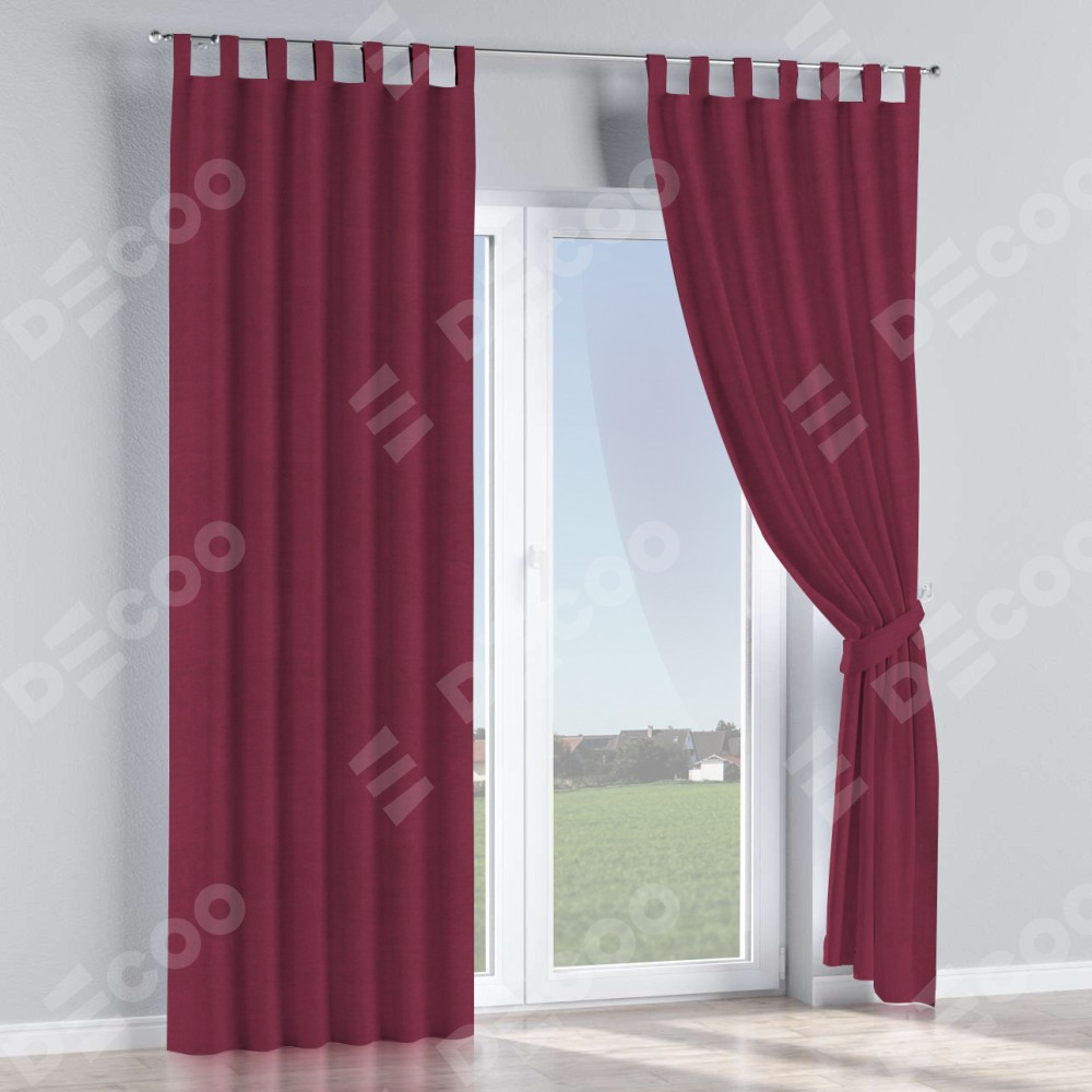 Комплект прямых штор, от производителя «Cortin», пошиты из ткани вельвет бордовый, артикул ткани 85553. Данная модель пошита на петлях, комплектуется на выбор круглым карнизом и подходит для монтажа на стену или потолок. Прямые шторы на петлях шьются по стандарту с коэффициентом 1/2 (на 100 см. ширины проёма 200 см. ширины ткани), отличительным преимуществом данной модели является простой способ монтажа. Достаточно повесить ее на трубу и штора готова!
