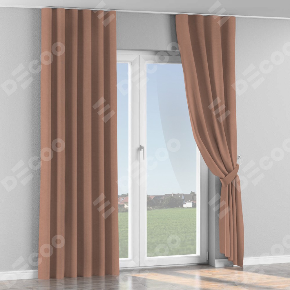 Комплект прямых штор, от производителя «Cortin», пошиты из ткани вельвет брусничный джем, артикул ткани 17750. С изнаночной стороны в верхней части штор пристрачивается шторная лента с декоративными складками «Волна». Для создания элегантных складок прямые шторы шьются по стандарту с коэффициентом 1:2 (на 100 см. ширины проёма 200 см. ширины ткани).