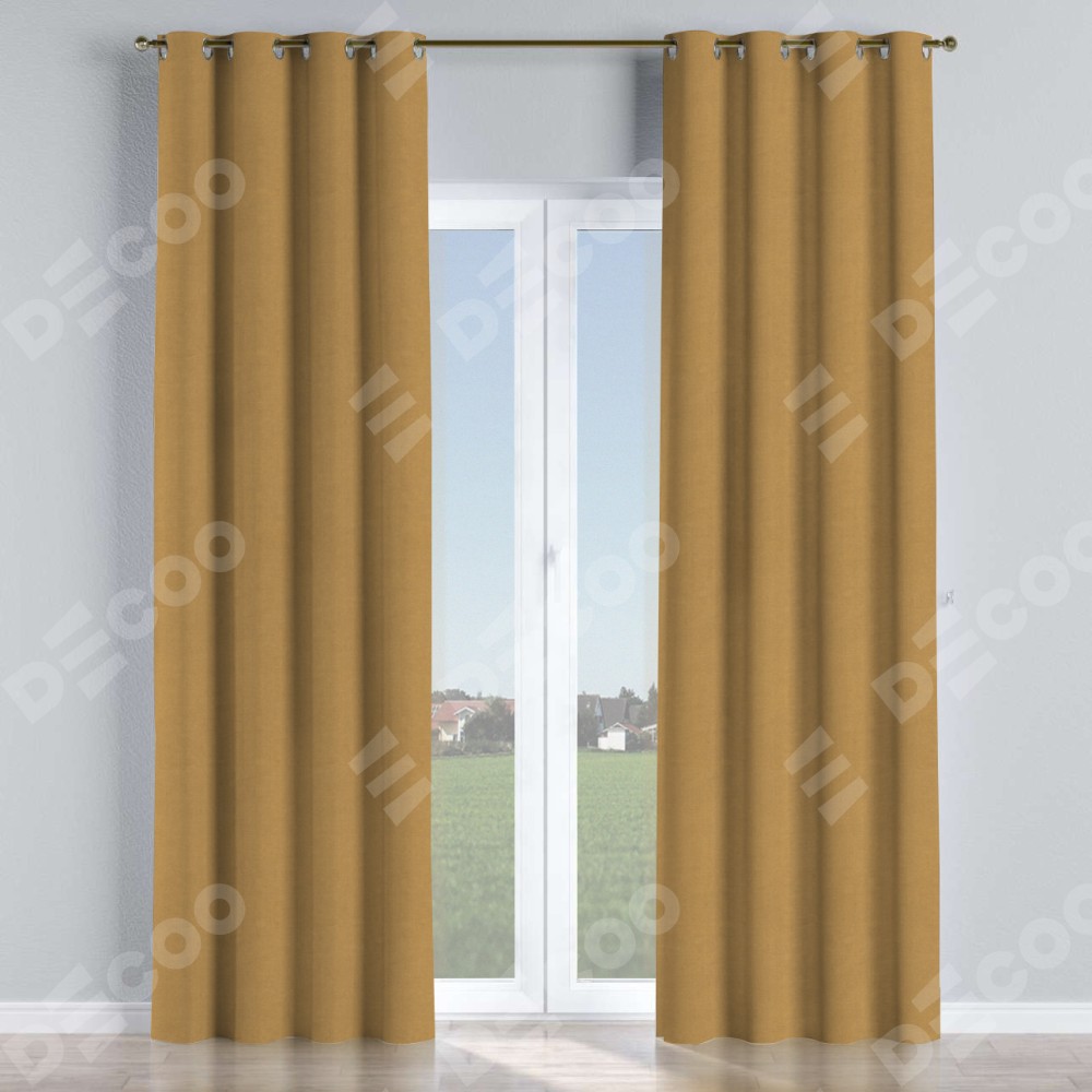 Комплект прямых штор, от производителя «Cortin», пошиты из ткани вельвет горчица, артикул ткани 17760. Данная модель пошита на люверсах, комплектуется на выбор круглым карнизом и подходит для монтажа на стену или потолок. Прямые шторы на люверсах шьются по стандарту с коэффициентом 1/2 (на 100 см. ширины проёма 200 см. ширины ткани), отличительным преимуществом данной модели является простой способ монтажа. Достаточно повесить ее на трубу и штора готова!