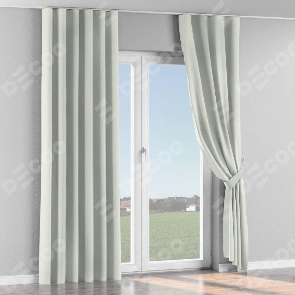 Комплект прямых штор, от производителя «Cortin», пошиты из ткани вельвет кремовый, артикул ткани 85524. С изнаночной стороны в верхней части штор пристрачивается шторная лента с декоративными складками «Волна». Для создания элегантных складок прямые шторы шьются по стандарту с коэффициентом 1:2 (на 100 см. ширины проёма 200 см. ширины ткани).
