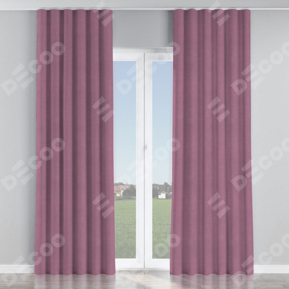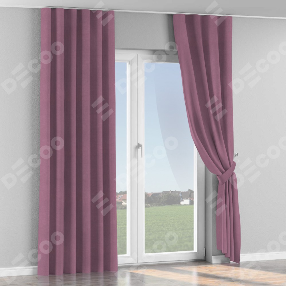 Комплект прямых штор, от производителя «Cortin», пошиты из ткани вельвет лиловый, артикул ткани 17752. С изнаночной стороны в верхней части штор пристрачивается шторная лента с декоративными складками «Волна». Для создания элегантных складок прямые шторы шьются по стандарту с коэффициентом 1:2 (на 100 см. ширины проёма 200 см. ширины ткани).