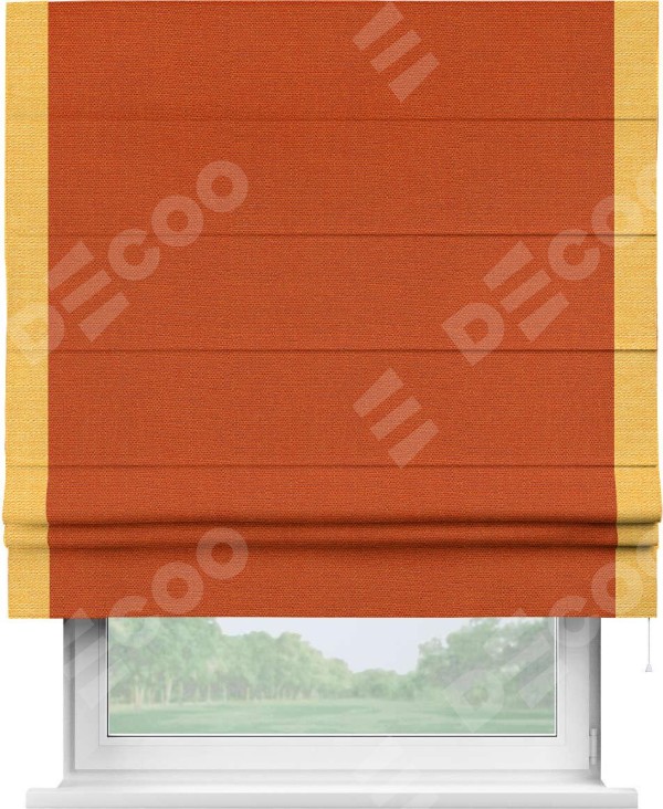 Римская штора «Кортин» с кантом Стрим Дуо, для проема, ткань лён терракотовый