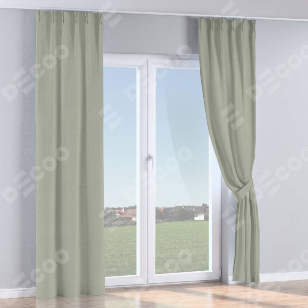Комплект прямых штор, от производителя «Cortin», пошиты из ткани вельвет светло-серый, артикул ткани 30981. С изнаночной стороны в верхней части штор пристрачивается шторная лента с декоративными складками «Кустик». Для создания элегантных складок прямые шторы шьются по стандарту с коэффициентом 1:2 (на 100 см. ширины проёма 200 см. ширины ткани).