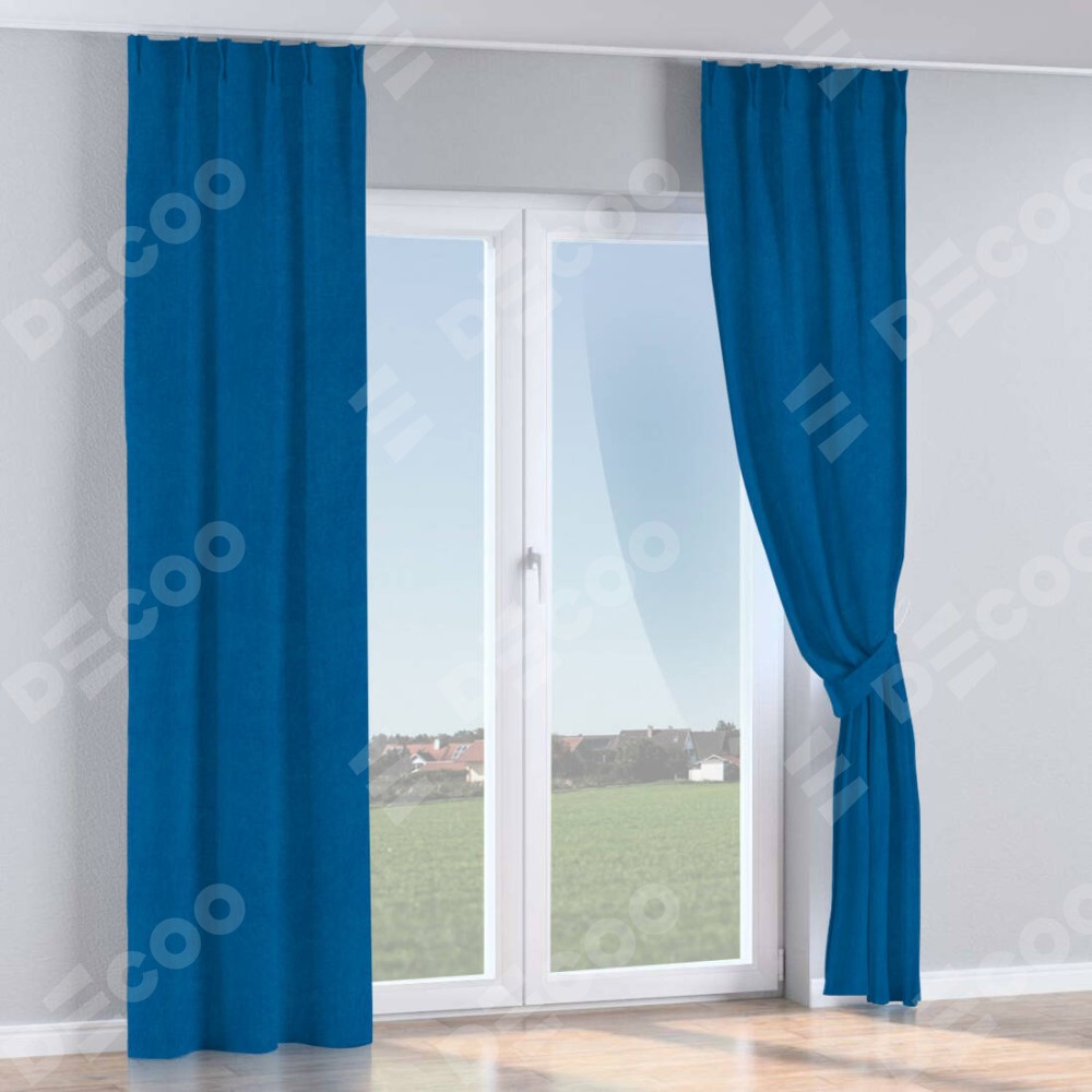Комплект прямых штор, от производителя «Cortin», пошиты из ткани вельвет синий, артикул ткани 85554. С изнаночной стороны в верхней части штор пристрачивается шторная лента с декоративными складками «Кустик». Для создания элегантных складок прямые шторы шьются по стандарту с коэффициентом 1:2 (на 100 см. ширины проёма 200 см. ширины ткани).