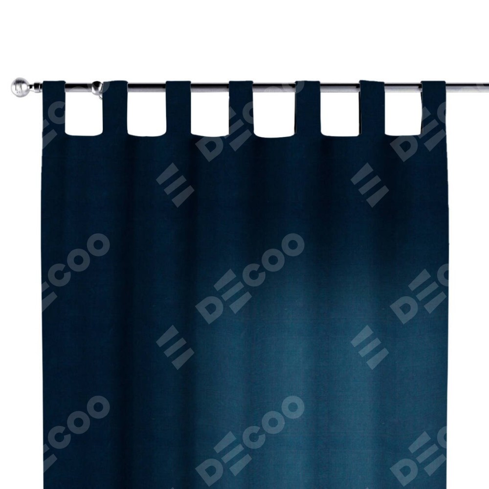 Комплект прямых штор, от производителя «Cortin», пошиты из ткани вельвет тёмно-синий, артикул ткани 14152. Данная модель пошита на петлях, комплектуется на выбор круглым карнизом и подходит для монтажа на стену или потолок. Прямые шторы на петлях шьются по стандарту с коэффициентом 1/2 (на 100 см. ширины проёма 200 см. ширины ткани), отличительным преимуществом данной модели является простой способ монтажа. Достаточно повесить ее на трубу и штора готова!