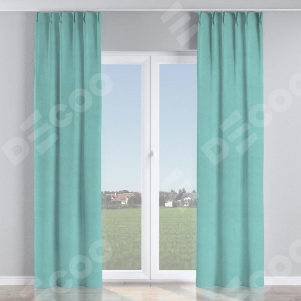 Комплект прямых штор, от производителя «Cortin», пошиты из ткани вельвет тиффани, артикул ткани 17765. С изнаночной стороны в верхней части штор пристрачивается шторная лента с декоративными складками «Кустик». Для создания элегантных складок прямые шторы шьются по стандарту с коэффициентом 1:2 (на 100 см. ширины проёма 200 см. ширины ткани).
