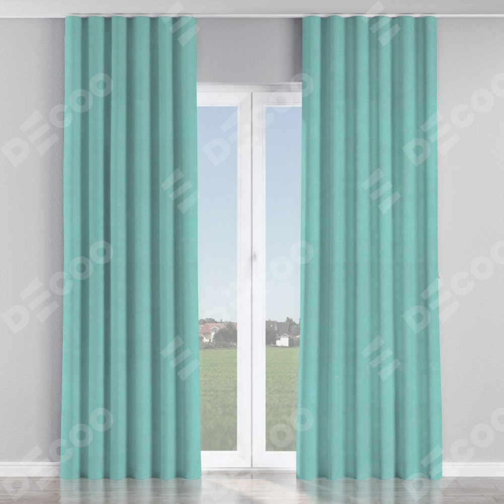 Комплект прямых штор, от производителя «Cortin», пошиты из ткани вельвет тиффани, артикул ткани 17765. С изнаночной стороны в верхней части штор пристрачивается шторная лента с декоративными складками «Волна». Для создания элегантных складок прямые шторы шьются по стандарту с коэффициентом 1:2 (на 100 см. ширины проёма 200 см. ширины ткани).