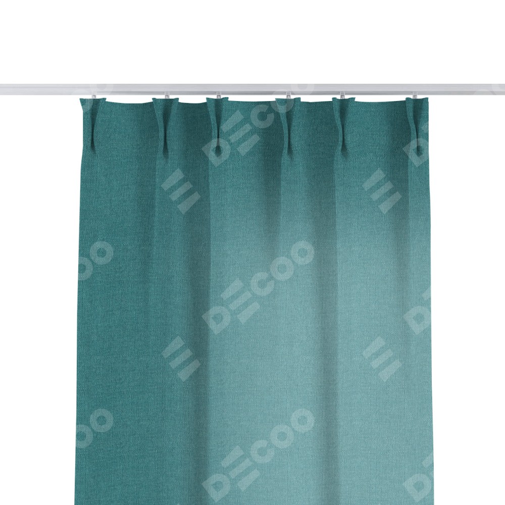 Комплект прямых штор, от производителя «Cortin», пошиты из ткани лён бирюзовый, артикул ткани 53436. С изнаночной стороны в верхней части штор пристрачивается шторная лента с декоративными складками «Кустик». Для создания элегантных складок прямые шторы шьются по стандарту с коэффициентом 1:2 (на 100 см. ширины проёма 200 см. ширины ткани).