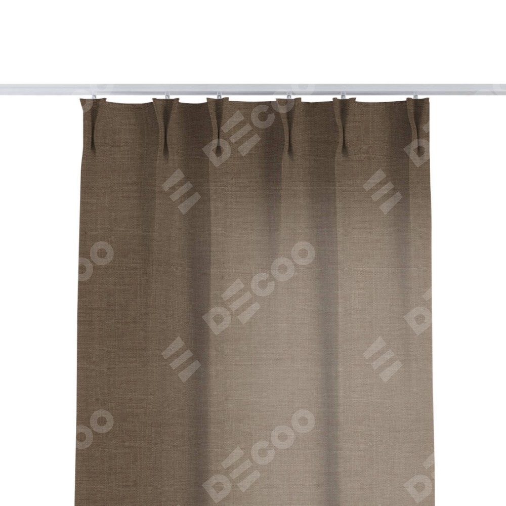 Комплект прямых штор, от производителя «Cortin», пошиты из ткани лён мокко, артикул ткани 7444. С изнаночной стороны в верхней части штор пристрачивается шторная лента с декоративными складками «Кустик». Для создания элегантных складок прямые шторы шьются по стандарту с коэффициентом 1:2 (на 100 см. ширины проёма 200 см. ширины ткани).