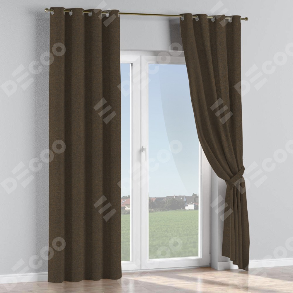 Комплект прямых штор, от производителя «Cortin», пошиты из ткани лён тёмно-коричневый, артикул ткани 53444. Данная модель пошита на люверсах, комплектуется на выбор круглым карнизом и подходит для монтажа на стену или потолок. Прямые шторы на люверсах шьются по стандарту с коэффициентом 1/2 (на 100 см. ширины проёма 200 см. ширины ткани), отличительным преимуществом данной модели является простой способ монтажа. Достаточно повесить ее на трубу и штора готова!